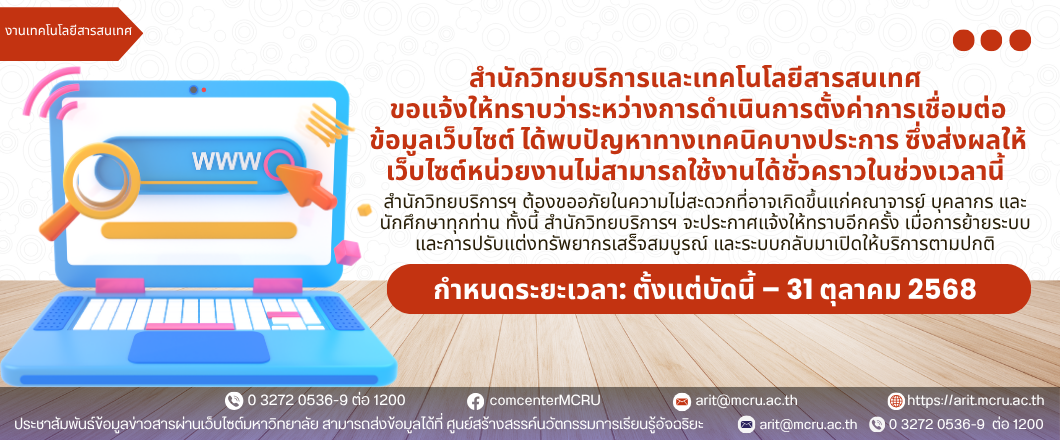 ระบบบริการออนไลน์ : https://maintain.mcru.ac.th